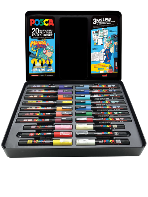 Paintmarker Uni POSCA Manga Hero assorti metalen koffer à 20 stuks