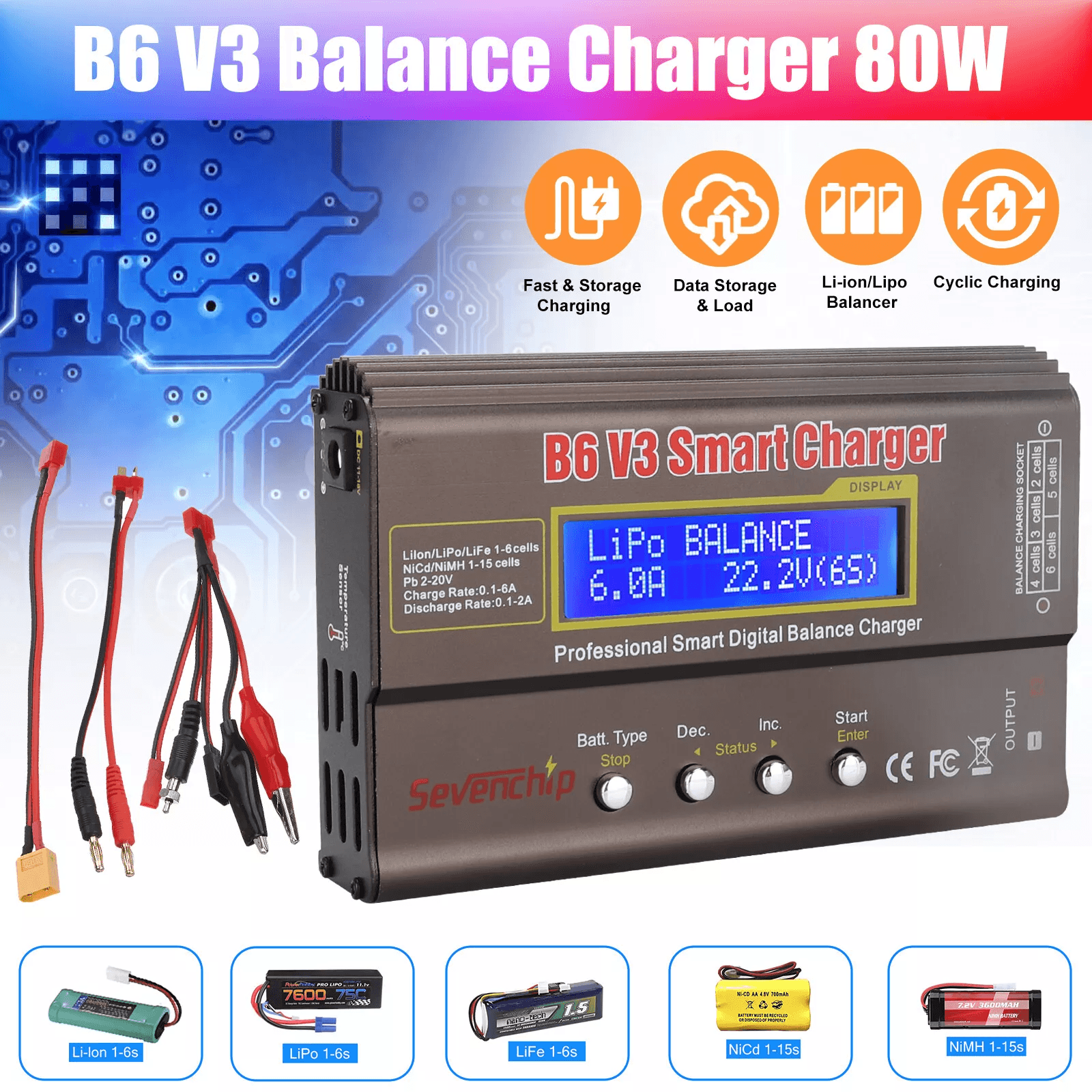 Smart LiPo Battery Balance Charger 6A Discharger for RC Cars, Boats, NiMH NiCd LiHV Li-ion Batteries with LCD Display